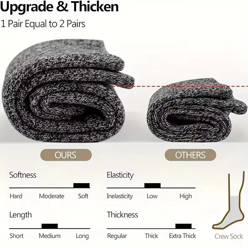 3 Pairs Winter Warm Thick Towel bottom Man Socks Wool Male Socks Slipper Socks Merino Wool Socks Against Cold Snow Socks 39-44*+