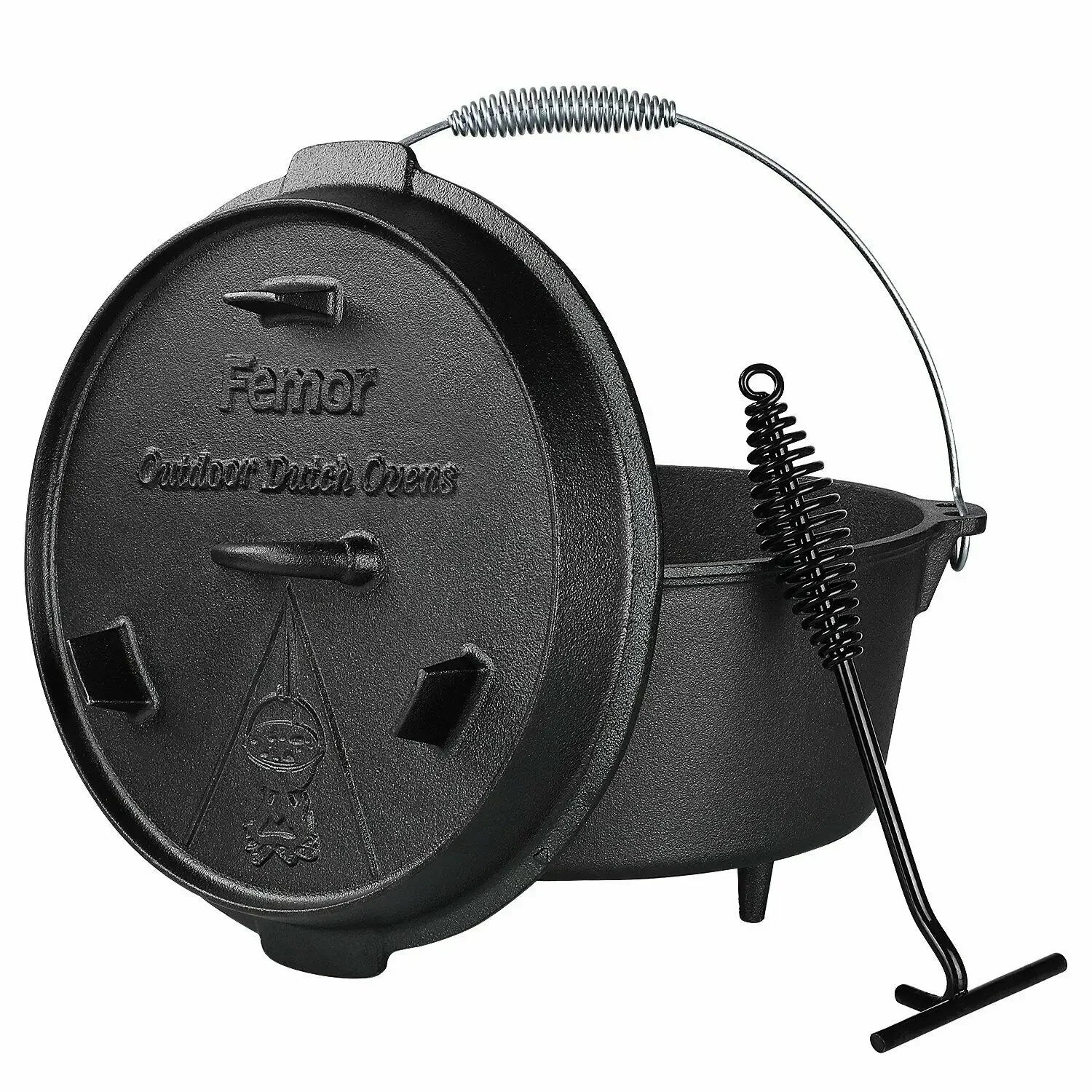 [Cast Iron Dutch Oven] - Made of cast iron. Compared to pots made of other materials, this deep Dutch oven is strong enough to withstand extreme outdoor conditions. With high-quality design and lifetime durability, your Dutch oven will last a lifetime (or more) if cared for properly.