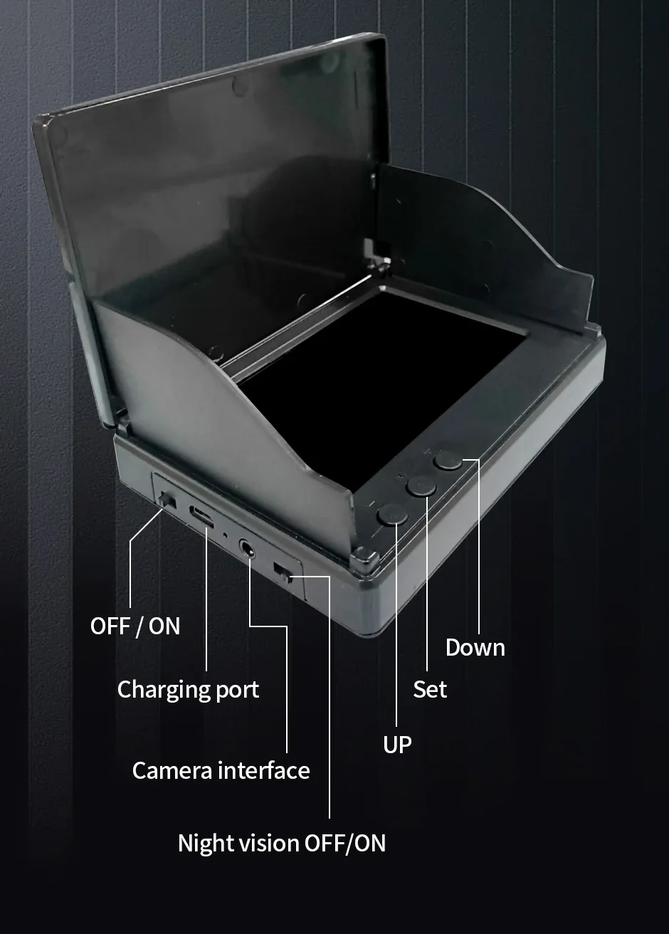 2. Outdoor-Ready with Sun Visor & Long Cable The foldable sunshade ensures clear viewing even in bright sunlight. Choose from 15M (49.21ft) or 30M (98.42ft) cable options to explore deep underwater environments with ease.