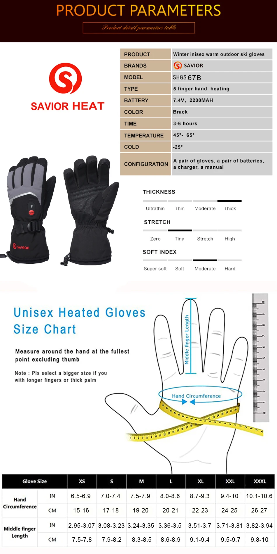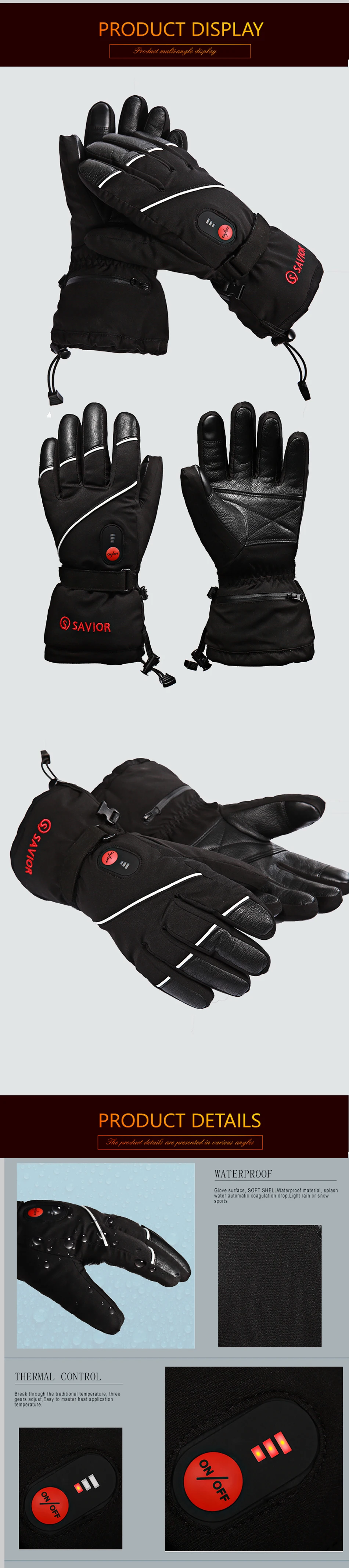 SAVIOR heated Gloves 7.4V Electric Rechargeable heated Gloves Waterproof Skiing Cycling Hiking Winter Warm Gloves heated