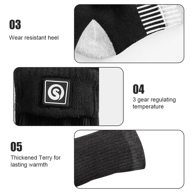 SNOW DEER-Rechargeable Electric Heated Socks for Men and Women, Snowboarding Stocking, Cycling Socks, Three Settings, Winter