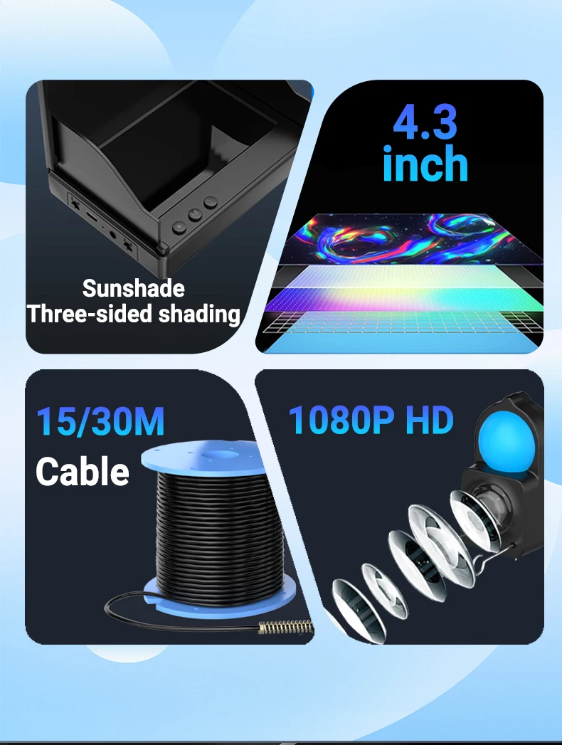 Underwater Fishing Camera Ice Fishing Camera with 4.3 IPS Wide Angle Display Infrared Night Vision with 15M /30M for Ice